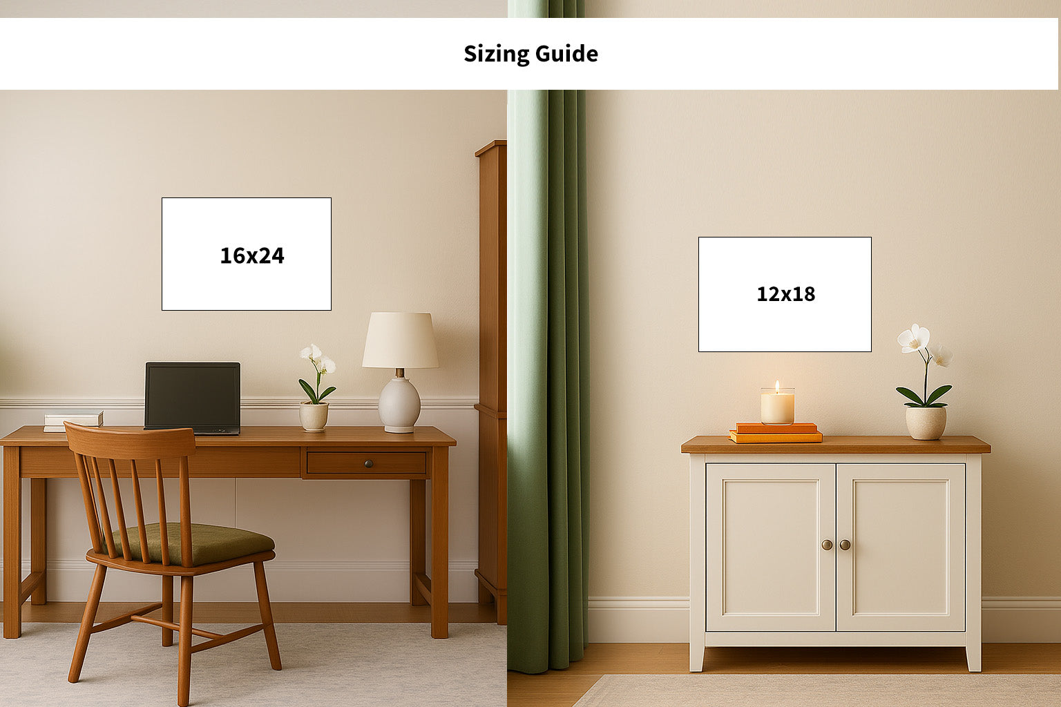 I offer four standard sizes that are designed to look great in almost any space - so it's hard to go wrong.